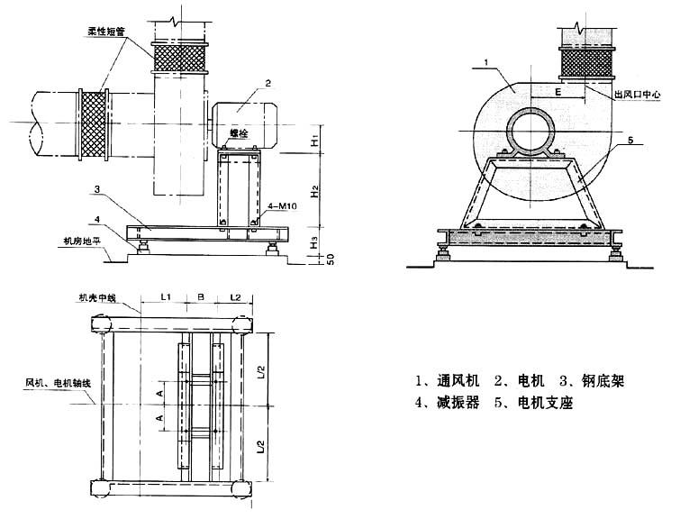 | 4-72-11NO2.8-6A glass centrifugal fan appearance and installation drawing | |