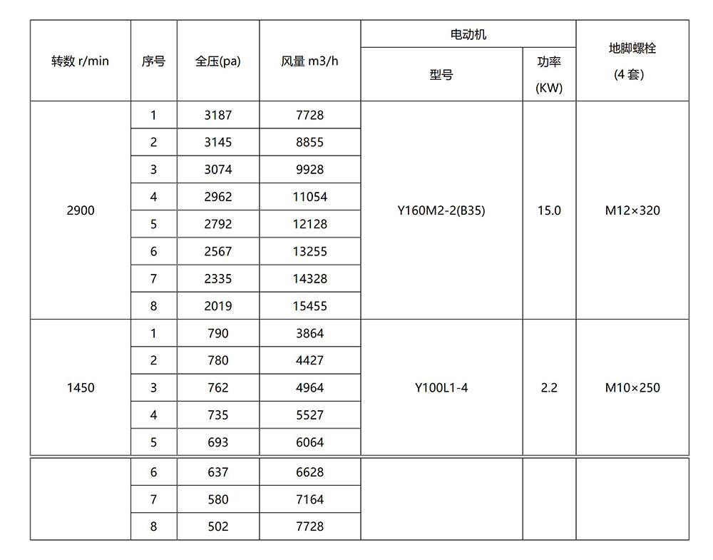 | 4-72-11No 12D Fiberglass Centrifugal Fan Specifications and Parameters Table | |