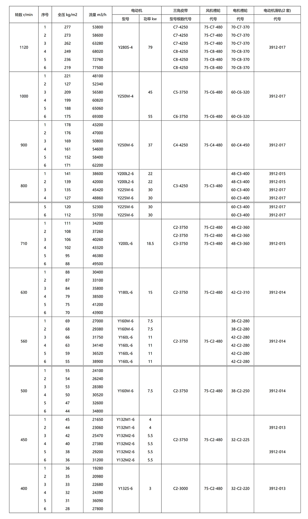 | 4-72-11No 6A fiberglass centrifugal fan specifications parameter table |